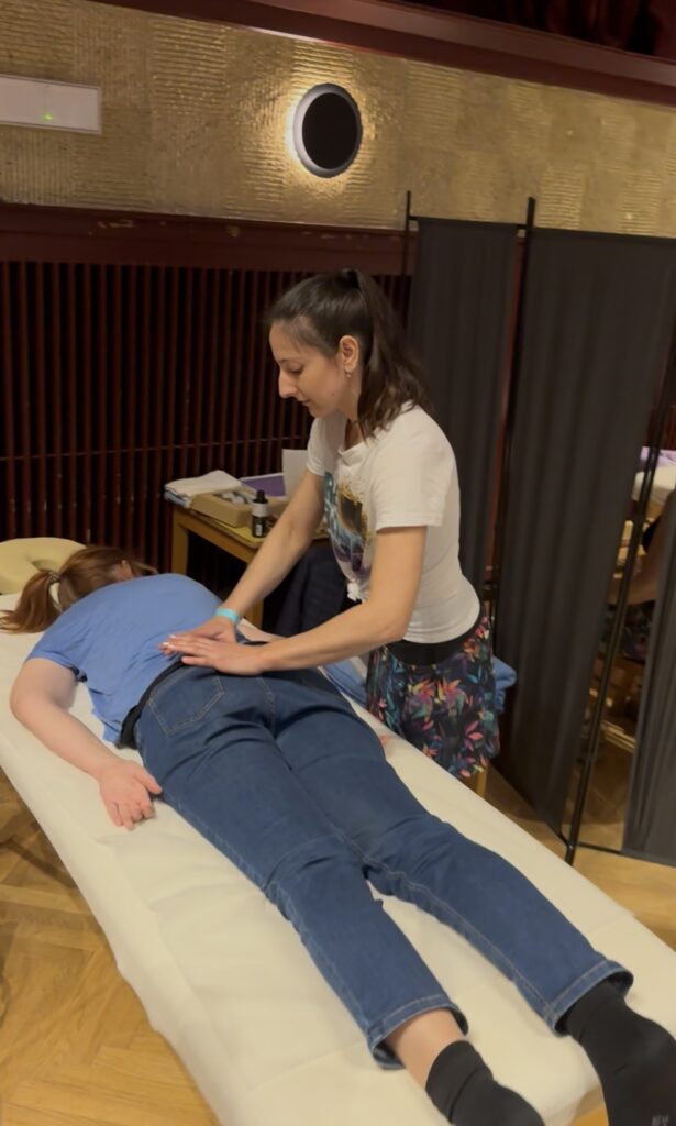 Ivona Řehánková – kolegyně a účastnice mých kurzů mohla předvést poznatky z kurzů ve svém podání a podtrhnout je svojí jedinečností, protože každý do své práce vkládáme kus sebe a tím je péče o to víc jedinečná. Pro doplnění jsem u lehátka byla i já a moji další tři kolegové, kteří mi v masérně pomáhají pečovat o klienty, které už sama nestíhám ošetřovat. Každý si tak opravdu přišel na své a ikdyž byly fronty u lehátek, věřím, že to návštěvníky neodradilo a den si užili.