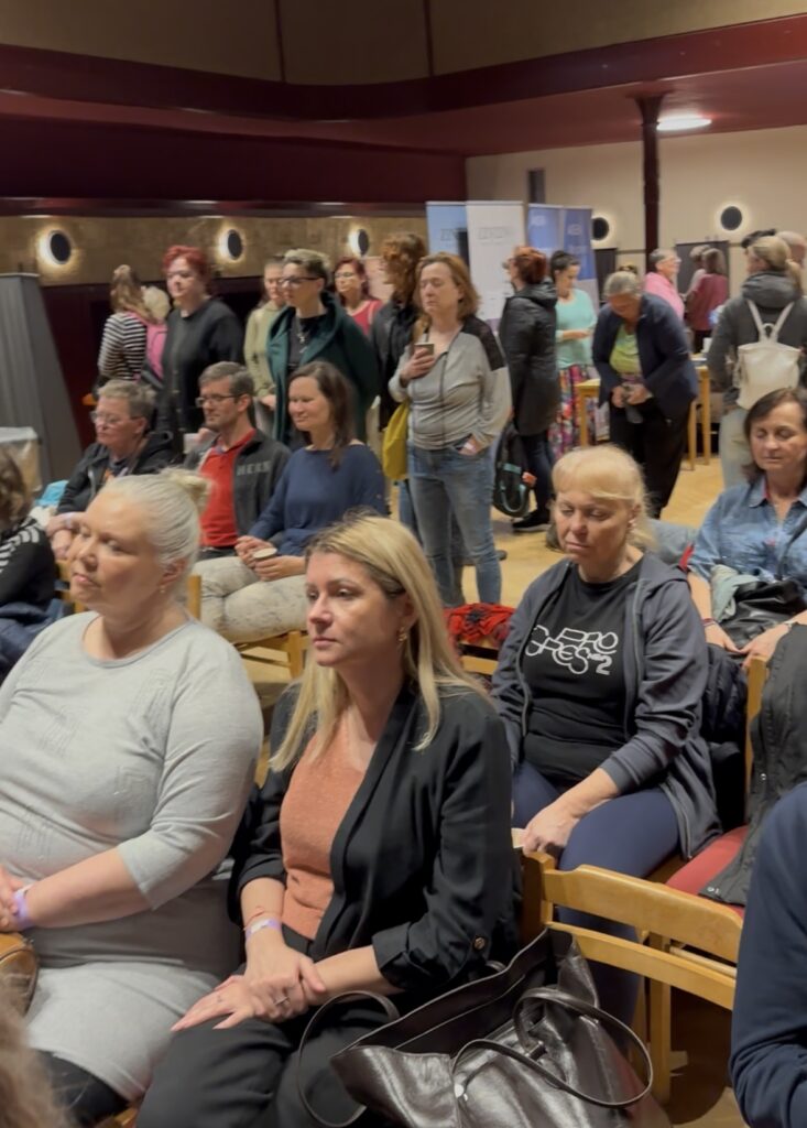 Mgr. Jana Pangrácová inspirovala návštěvníky svým pohledem na to, jak nastavením vnitřního klidu lze řešit nejen zdravotní, ale i vztahové výzvy. Při jejím povídání a zapojení publika do péče o sebe sama bylo velice jasně patrné, jak se hluk v místnosti utišil a lidé se aktivně zaměřili na své nitro – základ veškerého bytí. Sledovat své ladění, klid versus chaos v těle způsobený dnešním světem. Skrze dýchání a vizualizací přinášíme do sebe pokoj, který na sebe pak nabaluje zdraví, úspěch, radost i spolupráci s dalšími lidmi.