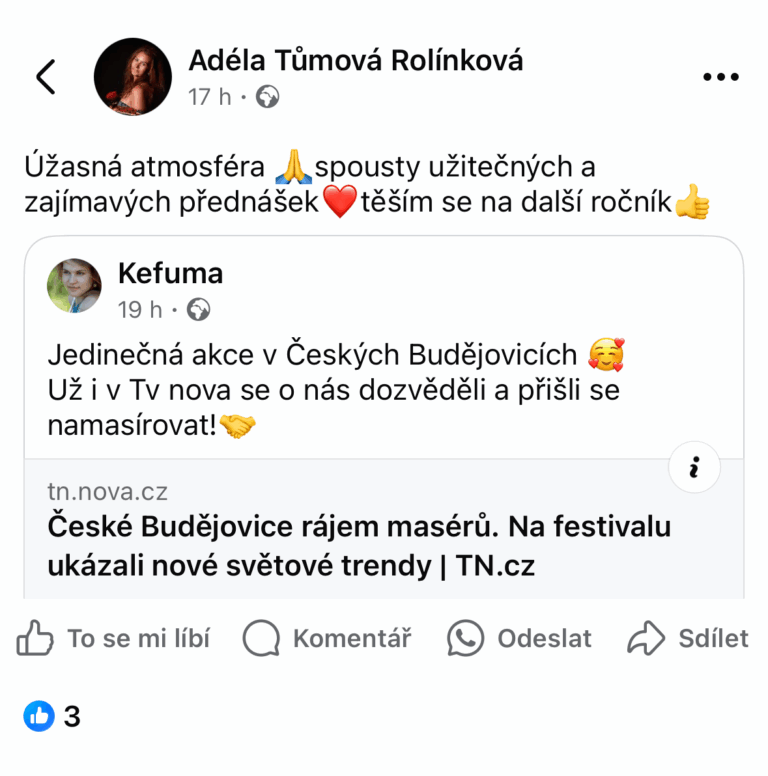 Masážím a kosmetice se věnují 20.let. Jsem vděčná , že se mohu věnovat této profesi, jelikož cítím, že jsem se v ní našla .